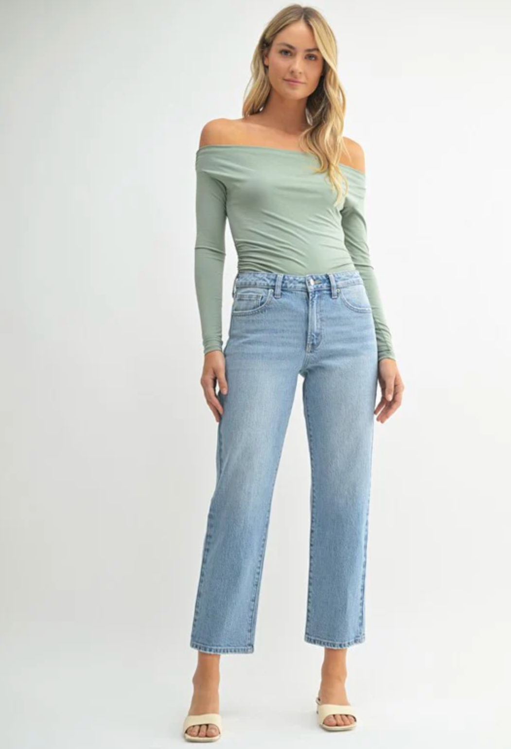 Inspired by the iconic style of the '90s, these jeans feature a slightly relaxed, straight-leg fit that's both flattering and comfortable. Crafted with just the right amount of stretch, they offer a perfect balance of structure and flexibility. Its medium denim wash adds a timeless, lived-in look, making these jeans a versatile wardrobe staple.