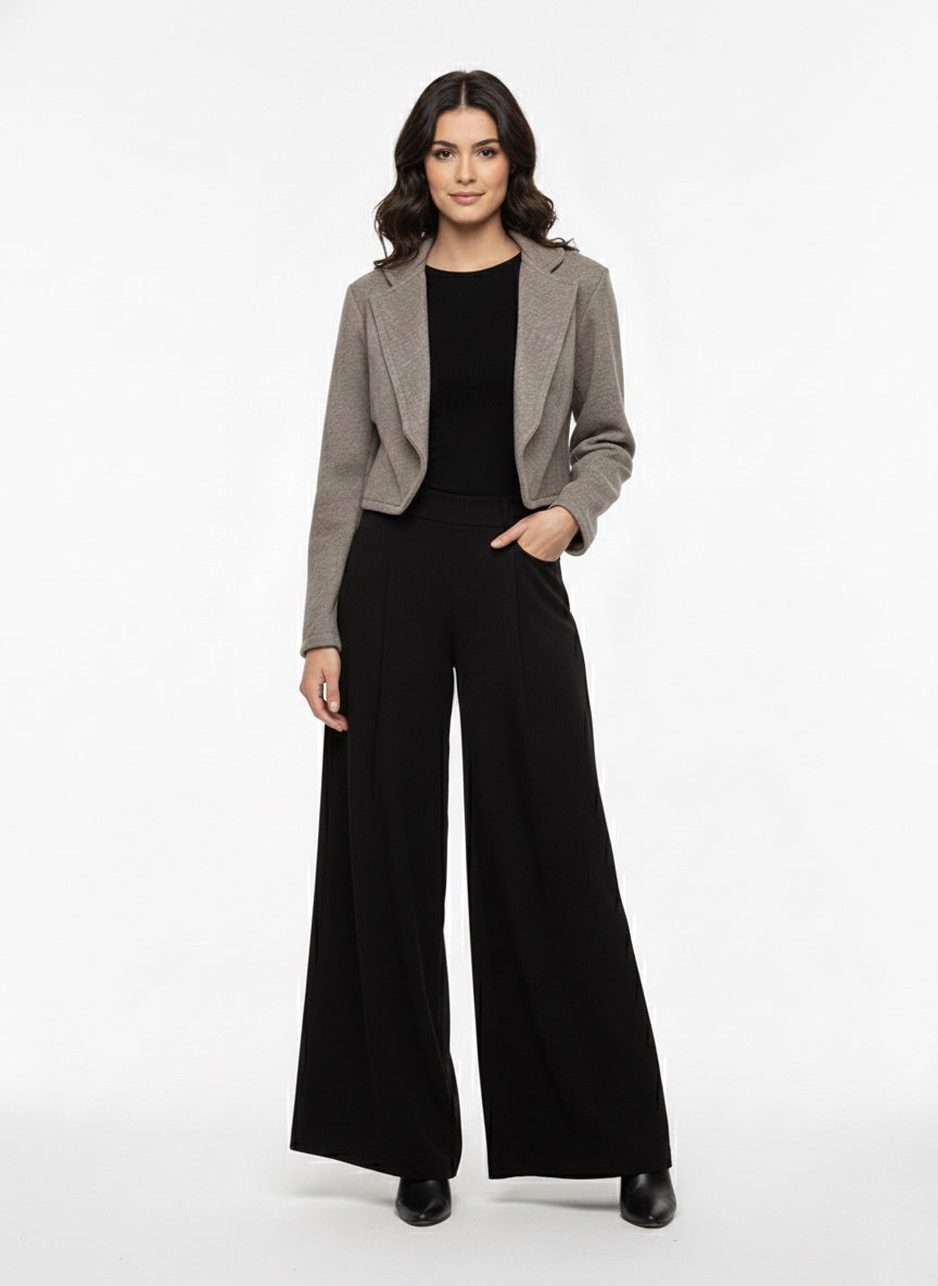 Chaqueta de Cuero Gastado, color marrón, manga larga entallada y corte alto.