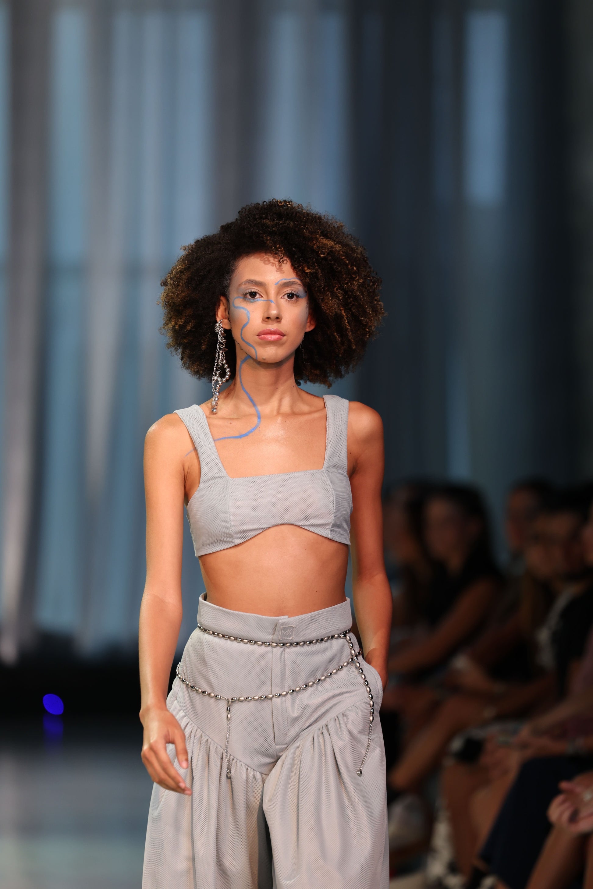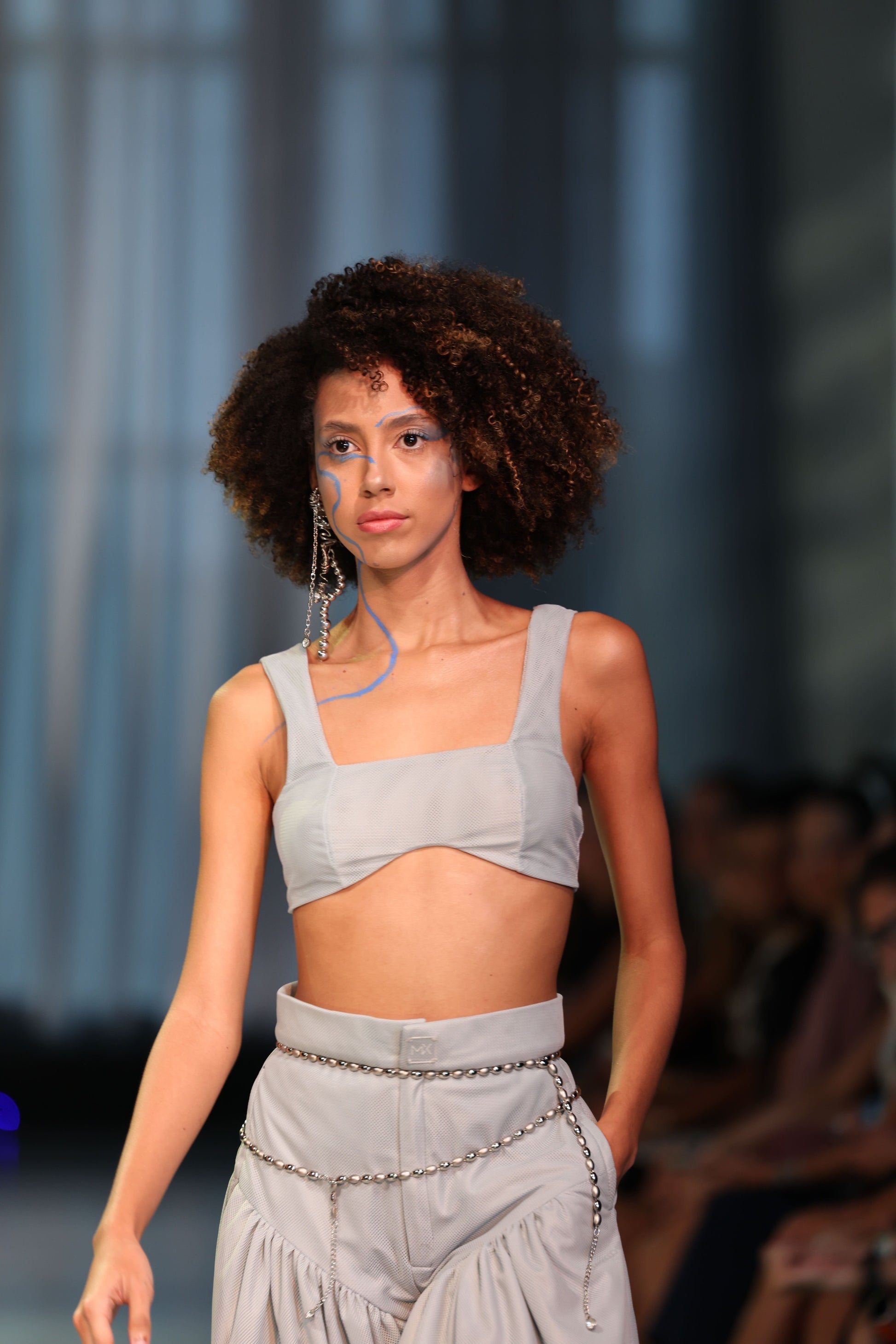 Top sin mangas de tela de malla y cruzado en la espalda, con una forma ovalada en el escote delantero para pronunciar mas el busto.